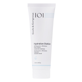 1 Geek & Gorgeous Hydration Station Intensywnie nawilżający krem/ żel | -Intensywne nawilżenie; -Wzmocnienie bariery ochronnej; -Łagodzenie podrażnień; -Działanie antyoksydacyjne i przeciwstarzeniowe; -Lekka, szybko wchłaniająca się formuła. | Ektoina, witamina E, alantoina, glukoza, bisabolol. | MOJA OCENA: 5/5 | CENA: 45-60zł/ 50ml | |
