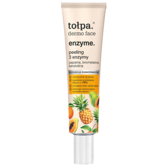 5 Tołpa Dermo Face Enzyme - Peeling 3 Enzymy | -Złuszcza martwy naskórek i wygładza strukturę skóry; -Zmiękcza skórę i poprawia jej koloryt; -Zmniejsza wydzielanie sebum; -Wspomaga redukcję niedoskonałości i zaskórników. | Papaina, bromelina, keratolina. | MOJA OCENA: 4,2/5 | CENA: 20-30zł/ 40ml |